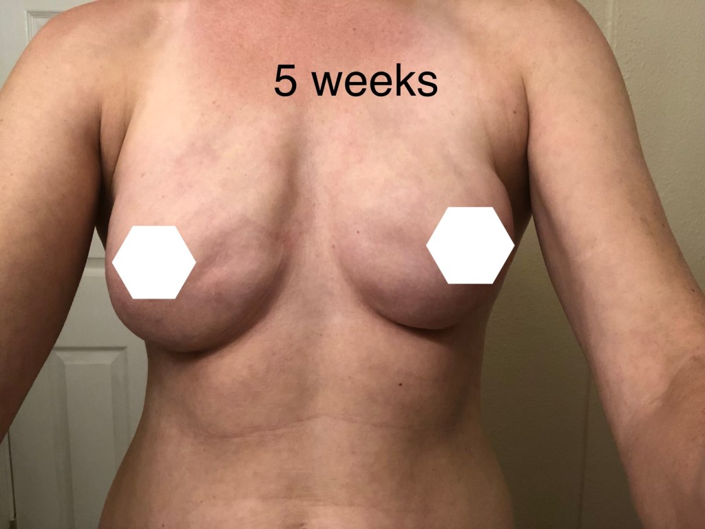 As the weeks progressed, you will see MASSIVE improvements in the reconstructed chest (if you go that route). At about one year they are what they will look like. I under went a couple surgeries in that time. Fat transfers and such to try and plump up the implants because I was lean there wasn’t much tissue other than skin.